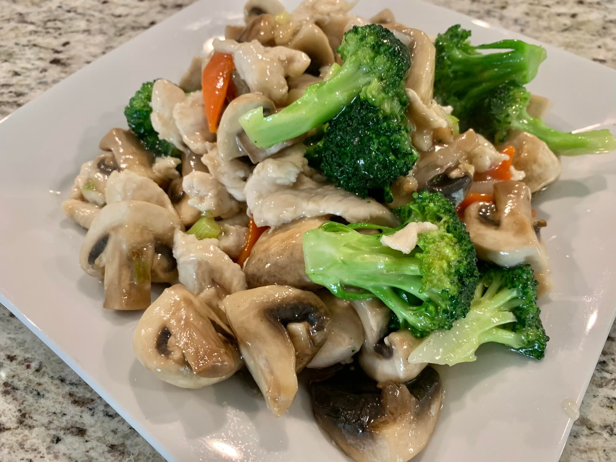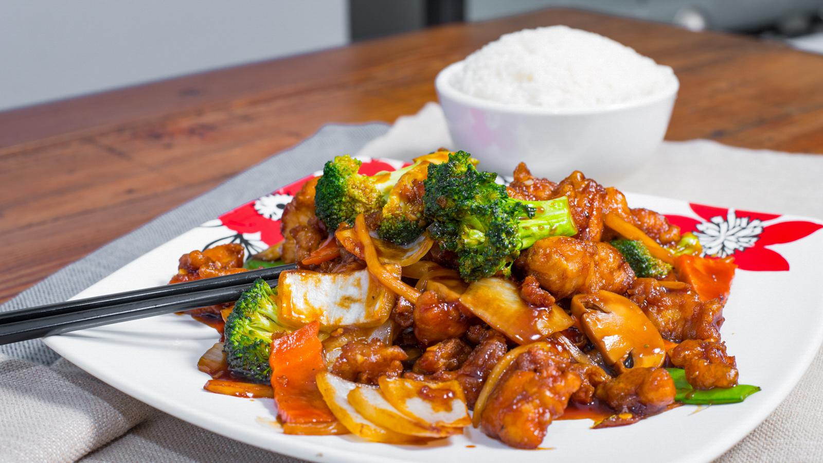 Brown sauce, carrots, onions, bell peppers, toasted cashew