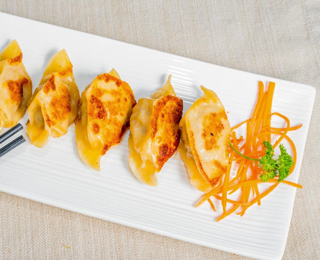 Griddled potstickers with grounded chicken & cabbage (8pcs).